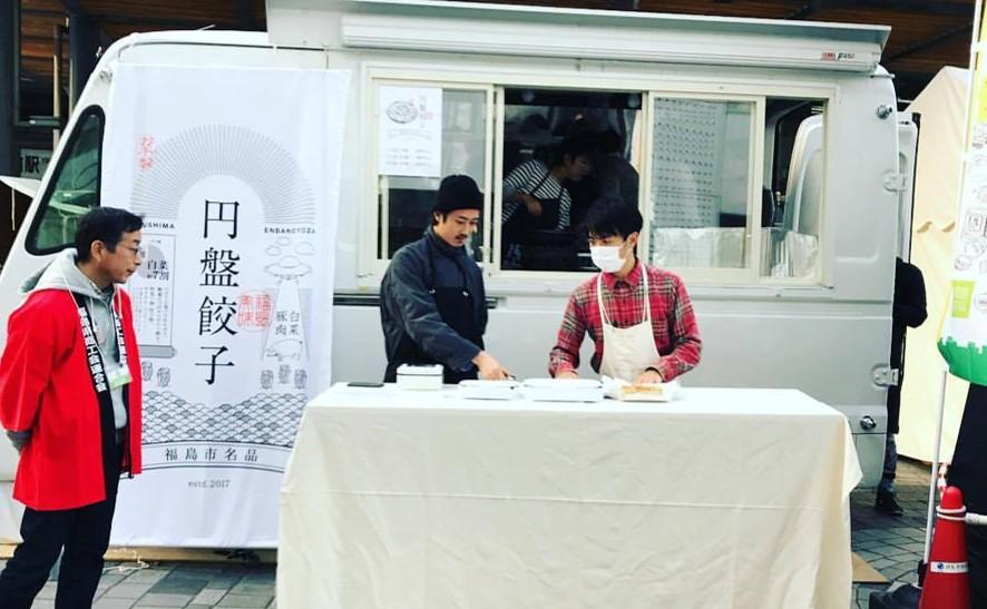 北山:スマイルズらしいなと思うのは、福島商工会議所さんの案件でしょうか。元々は東京で開催する福島の食フェアのメインビジュアルの依頼でした。そのリサーチで私たちが福島を訪れたときに、一番衝撃を受けた食べ物が「円盤餃子」でした。その名の通り、投げられそうな、とてもインパクトのある形で、絶対売れると思ったんです。だったらこの食フェアに自分たちで出しちゃおうと盛り上がり、架空の円盤餃子屋さんのロゴを作って、キッチンカーも借りて、実際に販売までしてしまいました。